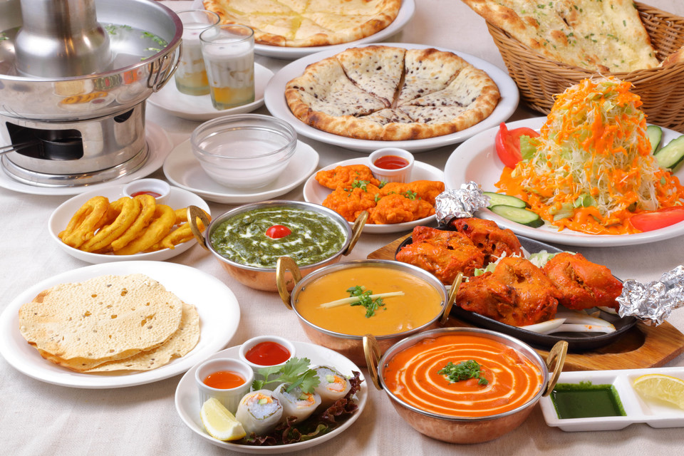 〇パパド(豆のせんべい) 〇ベトナム春雨スープ 〇インド野菜サラダ 〇選べるアラカルトお一人様1品(生春巻き/サモサ/フライドポテト/オニオンバージィー/パコダ) 〇タンドリーチキン 〇食べ放題カレー(チキン/ポーク/豆/野菜/ほうれん草とじゃがいものカレー) 〇食べ放題ナン(プレーンナン/ハニーナン/セサミナン/バターナン/揚げナン) 〇バニラアイスのマンゴーソース添え